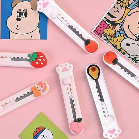 Niedliches Design: Der kawaii Mini-Cutter hat 5 niedliche Cartoon-Muster. Unsere Schneider lassen sich schnell und einfach in verschiedene Klingenlängen schieben, was Ihnen Präzision verleiht.