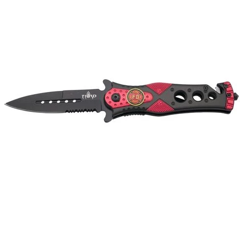 Drittes unterstütztes Sicherheitsmesser der Luftwaffe, Mango aus rotem/schwarzem Aluminium und 10,1 cm Edelstahlklinge, mit Säge, mit Sicherheitsgurtschneider und Glasbruchspitze.