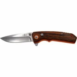 Assistiertes Messer Third K4108R, Holzgriff mit orangefarbenen Einlagen, 8,5 cm lange Klinge aus rostfreiem Stahl 420 mit satiniertem Finish, arretierende Schaftverriegelung.