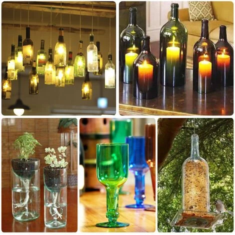 Mit diesem Glasflaschenschneider werden Ihre Abfallflaschen recycelt. Eine Partykerze, eine Vase und ein Blumentopf werden von diesem Flaschenschneider hergestellt. Mit spezieller Struktur und scharfen Klingen ist es fur Sie sehr einfach zu bedienen.