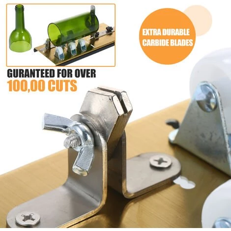 Dieser Flaschenschneider ist ein ideales Werkzeug zum muhelosen, sicheren, schnellen und prazisen Schneiden von Glasflaschen. Die Maschine kann gleichzeitig alle Flaschen schneiden, recyceln und Kunst machen. Es ist stabiler und einfacher zu bedienen als Kunststoffmodelle. Sie konnen Flaschen in 5 einfachen Schritten perfekt schneiden.