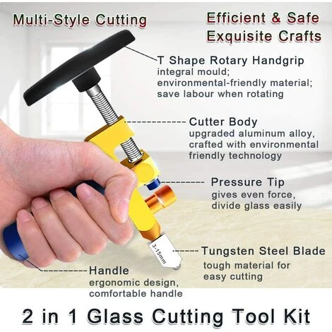 ��Vielseitiger Glasflaschenschneider��Er eignet sich perfekt zum Schneiden von Buntglas und anderen handwerklichen und Haushaltszwecken. Ein unverzichtbares Schneidwerkzeug f��r DIY-Projekte. Es eignet sich f��r Spiegel, Fenster, Glasregale, Buntglasschneiden usw.