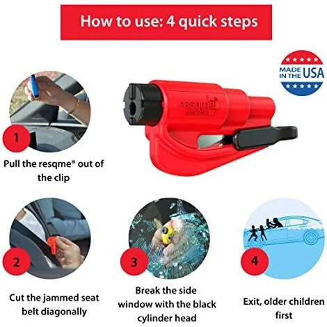 Tempered Glass Window Breaker: Die starke und stabile Spitze aus Edelstahl bricht leicht Seitenscheiben aus gehärtetem Autoglas. Schlagen Sie vorzugsweise auf eine der Ecken des Fensters, um die besten Ergebnisse zu erzielen. Der resqme ist mit einem Federmechanismus ausgestattet und stellt sich nach jedem Gebrauch selbst zurück. Der ist mehrfach wiederverwendbar.