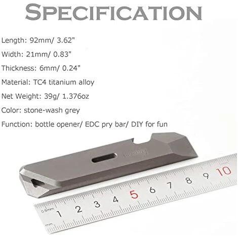 Mehrzweck. All-in-One-Design, dieses edc-Titan-Multitool enthält mehrere Funktionen und erfüllt verschiedene Situationen. Funktioniert als tragbarer Flaschenöffner, CM-Einheitswaage oder Dosenöffnerfunktion.