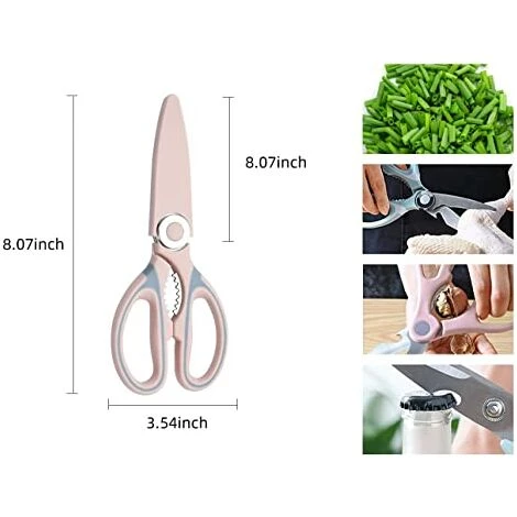 EINWANDFREIE LEISTUNG: Die K��chenschere bew?ltigt problemlos alle K��chenaufgaben, wie Schmetterlingsgefl��gel, Schneiden von Fleisch, Gefl��gelknochen, H?hnchen, Gem��se, Fisch, diverse Lebensmittel, Kr?uter usw. Keine Notwendigkeit f��r Schneidebretter oder K��chenmesser.