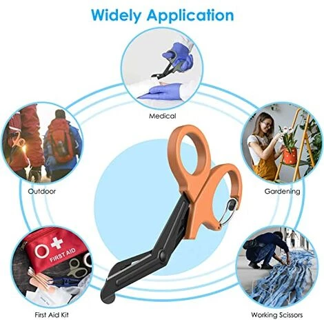 【Patentierter Spezialkarabiner】Unsere Top-Traumascherenserie verfügt über ein patentiertes stahlverstärktes Karabinerdesign. Die Schwesternschere lässt sich leicht tragen und direkt an Ihrer Uniformtasche, Ihrem Rucksack oder Ihrem Erste-Hilfe-Kasten anbringen. Halten Sie sie immer griffbereit!