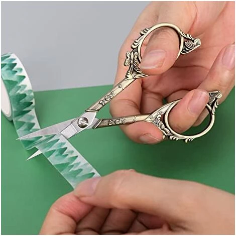 Scharfe Edelstahlklingen sorgen für das kleine niedliche Nähen Schere Langlebig, robust, leicht bis leicht zu manövrieren, gute kleine Schere für den Einsatz auf engstem Raum beim Papierkleben, schwierigen Schnitten und Beschneiden von Überhängen auf Tagebuchseiten. Wenn Sie ein begeisterter Sticker sind, werden Ihre Nähprojekte mit den richtigen Werkzeugen zum Erfolg. klassische Retro-Schere mit Mikrospitze und scharfen Klingen, mit einer winzigen und bequemen Schere ist ein einfacher Stick-Hack-Stickkorb, mit anderen DIY-Werkzeugen oder sogar im Büro/in der Küche für einen schnellen und bequemen Zugriff