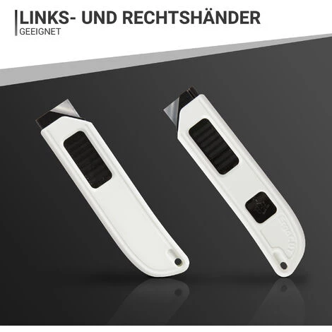 Komfortabel, klein, sicher und leicht. Unser Sicherheitsmesser mit einem automatischen Klingeneinzug eignet sich perfekt für Handwerksberufe aber auch für Lagerarbeiten oder im Büro. Kartons, Pappe, Folie und vieles mehr zerschneidet unser Cuttermesser ohne Mühe.
