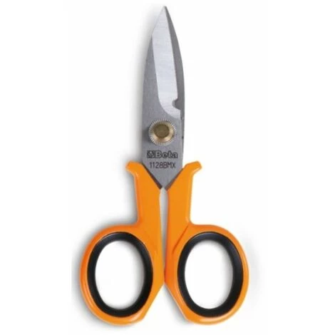 Beta Elektrikerschere mit geraden Klingen aus rostfreiem INOX-Stahl mit Mikroverzahnung an einer Schneide, Drahtschneidekehle.