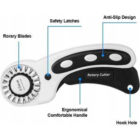 Außerdem schneidet es beim Schneiden von Leder, Stoff, Baumwolle, Papier und anderen Materialien keine Spuren und ist sauber und schnell. Rotationsmesser und Sicherheitsvorrichtung mit 3 Ersatzklingen