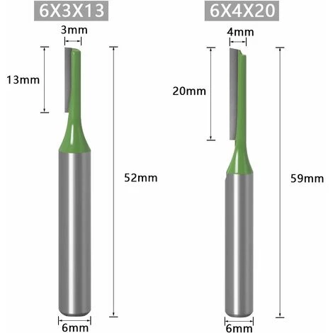Anwendbare Materialien】Gerade Schaftfräser werden zum Nuten und Trimmen von Holz verwendet. Geeignet zum Schneiden von allen Verbundwerkstoffen, Sperrholz und Weichhölzern. Nicht geeignet für das Schneiden von Harthölzern, wie Eiche, Kampfer und Birke.