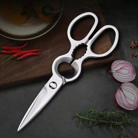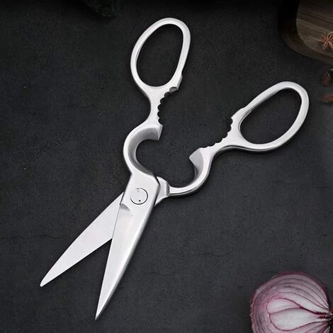 [Multifunktionsschere] Diese Schere ist eine multifunktionale Küchenschere für Geflügel, Grill, Pizza, Garnelen, Fisch, Fleisch, Wurst, Gemüse und mehr. Gleichzeitig ist die Schere auch ein Flaschenöffner und ein Nussknacker. Sie können sie problemlos zum Kochen, Grillen und für Partys verwenden.【Hochwertiges Material】Hochfestes Edelstahlmaterial, dreimal härter als gewöhnlicher Stahl, gewährleistet glatteres Schneiden. Mit langer Schneidfähigkeit, kann es die Schneide besser halten, korrosionsbeständig, hohe Härte und lange Lebensdauer.