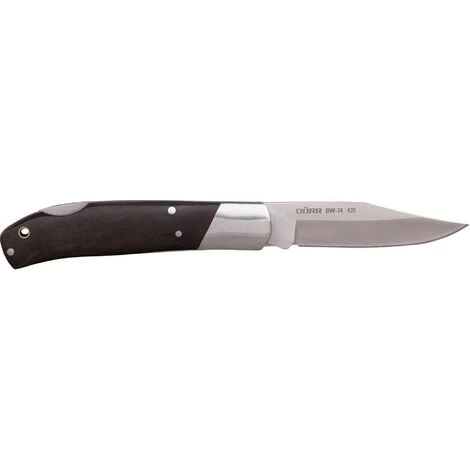 Das Taschenmesser BW-74 von Dörr Foto ist ein kompaktes Allzweckmesser mit Blackwood Holzgriff. Die 74 mm lange Klinge ist aus rostfreiem 420er Messerstahl gefertigt und hat eine Klingenstäre von 2.40 mm. Das Blackwood Taschenmesser wiegt nur 83 g und garantiert durch die klassische Rückenverriegelung für eine sichere Arretierung der