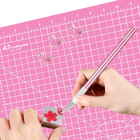 Außerdem hinterlässt es beim Schneiden von Leder, Stoff, Baumwolle, Papier und anderen Materialien keine Spuren und ist sauber und schnell. Drehmesser und Sicherheitsvorrichtung mit 3 Ersatzklingen