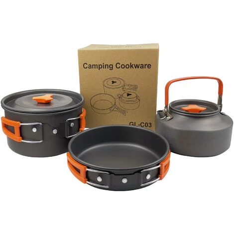Das Campingkochgeschirr-Set besteht aus hartem Aluminiumoxid, das sich durch hochwertige Oxidation, hohe Temperaturbeständigkeit, Verschleißfestigkeit und angenehme Haptik auszeichnet. Geeignet für den Innen- und Außenbereich