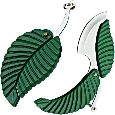 3.【LEICHTES ERGONOMISCHES DESIGN】: Die grünen Teile sind aus Kunststoff. Beim Öffnen passt sich der Griff Ihrem Griff vollständig an, was das Schneiden und das Ausüben von Druck erleichtert. Auch hier ist die Klinge sehr scharf, und das ganze Stück wiegt nur 32 g. Sie müssen einen der exquisiten Schlüsselanhänger aus Blättern behalten. Natürlich müssen Sie es auch einem Freund geben und ihm einen unerwarteten und überraschenden kleinen Gegenstand schenken.