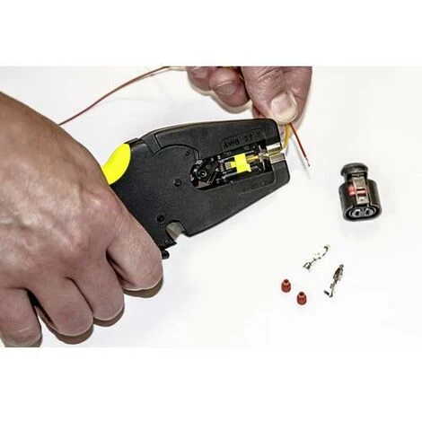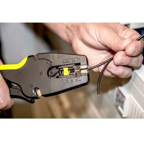 zur schnellen und präzisen Abisolierung von flexiblen und starren Kabeln . keine Beschädigung der Drähte. optimale Messergeometrie für einen robusten und langlebigen Einsatz. ergonomische Griffgestaltung mit Schutzfunktion für Kabelschneider (keine Verletzungsgefahr). vollautomatische Anpassung an ein-, mehr- und feindrähtige Leiter mit PVC-Isolationen und eine Vielzahl von speziellen Isolationen im gesamten Kapazitätsbereich von 0,03 bis 10,0 mm². Metallklemmbacken für minimierten Verschleiß. mit vertieft liegendem Kabelschneider für Cu- und Alu-Leiter, mehrdrähtig bis 10,0 mm² und eindrähtig bis 6,0 mm². Längenanschlag leicht verstell- und austauschbar. auswechselbarer Messerkopf .