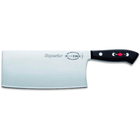Dieses spezielle Kochmesser aus der Serie Superior – Made in Germany – ist das wichtigste Messer in der asiatischen Küche. Mit dem breiten Klingenrücken (Chopper) und seiner 18 cm langen Klinge ist es bestens geeignet zum Zerteilen von großen Stücken Fleisch und zum feinen Hacken von Gemüse. Die Superior Serie ist für den Einsatz im professionellen Bereich konzipiert. Klassisches Design mit Griffnieten und die leichte Ausführung ergeben ein Messer in morderner Form und Funktion. Klinge und Griff sind ohne Spalt fest miteinander verbunden, dank dem durchgehenden Stahl bis zum Griffende wird eine hohe Stabilität erreicht. Das Nachschärfen der gesamten Schneide ist möglich. Klinge ist aus X55CrMo14 Stahl. Die ausgewogene Härte von 56° HRC ist der ideale Kompromiss für perfekte Schnitthaltigkeit und leichtes Nachschärfen.