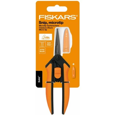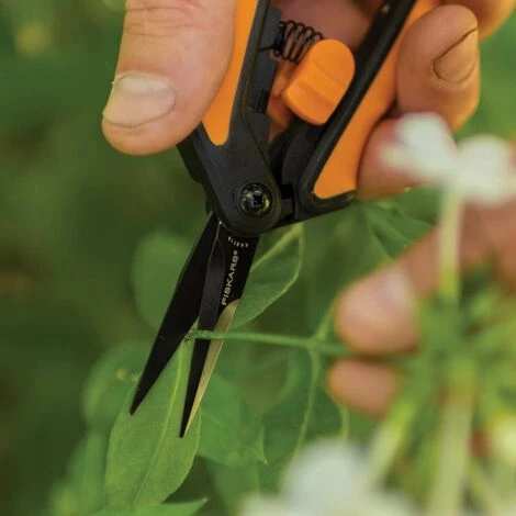 „FISKARS® Blumenscheren verfügen über präzise Klingen, die bis zur Spitze schneiden – für saubere, gesunde Schnitte an Pflanzen auf engem Raum.