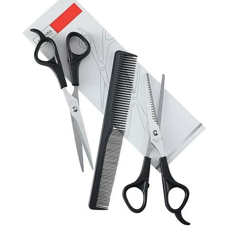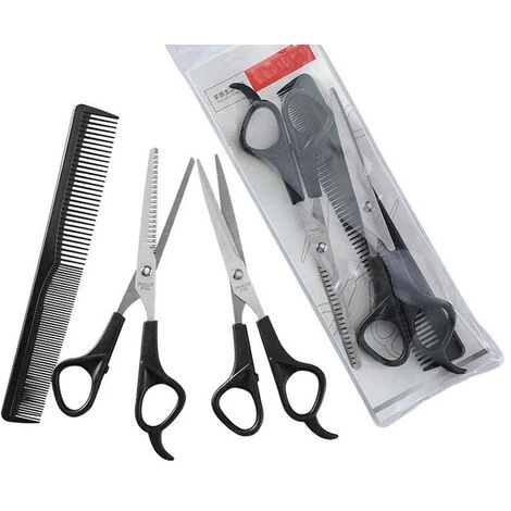 Haushalt Friseur Schere Ausdünnung SchereBeschreibung:-Name: Barber schere set-Das paket beinhaltet: 1pc flache schere + 1pc zahn schere + 1pc kamm-Material: 3Cr13 edelstahl + PP kunststoff– Flache scher größe: gesamtlänge 16,8 cm;– Klinge länge 9cm– Zahn scher größe: gesamtlänge 16,9 cm; klinge länge 9,3 cm– Kamm länge: 17,5 cm-Die anzahl der zähne geschnitten zähne: 21 zähne — Gewicht: 64gEigenschaften:– Die schere sind aus 3Cr13 edelstahl, die dauerhaft ist und nicht einfach zu rost.– Die messer rand ist verarbeitet durch sekundäre schleifen, die macht die messer rand sharp.– Flache schere sind geeignet für schneiden pony und schwanz haar, und zahn schere sind geeignet für dünner werdendes haar.– Die schere nehmen PP klinker griff, die ist bequem zu halten und sich wohl fühlen.