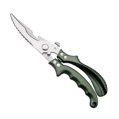 【Extrem scharfe Klingen】 Die Klingen sind aus Edelstahl, scharf und langlebig; Eine der Klingen hat ein Sägezahndesign, um einen sicheren Halt und präzises Schneiden zu gewährleisten, und die gezackte Außenkante eignet sich zum Schaben von Fischschuppen; Der gebogene Mittelteil ist zum Schneiden harter Knochen ausgelegt.