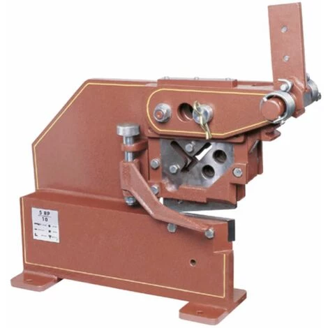 Handhebelschere • Anwendung: Zum Schneiden von Blech. Flach-. Rund-. Vierkant- und L- oder T-Stahl (nicht für Edelstahl-Bleche geeignet). • Ausführung: stabiler Scherenkörper aus vergütetem StahlMesser aus besonderem Werkzeugstahl. spezialgehärtet und geschliffen • Vorteil: Hebelarm mit gewichtsausgleichender Feder als Unfallschutzmit stufenlos einstellbarem Niederhalter für sicheres Arbeiten