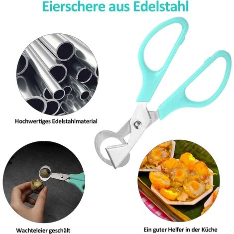 【Hochwertige Materialien】— Die Wachteleierschere besteht aus hochwertigem Edelstahl, hohe zähigkeit, nicht leicht zu brechen, nicht leicht zu rosten und dauerhaft. Mit ABS–Kunststoff griff gefertigt, rutschfest, liegt angenehm in der Hand und der ergonomische Griff.