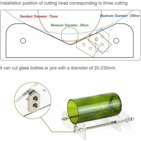 Geeignet für; Die meisten Flaschen: Diese Glasflaschen-Schneidemaschine ist geeignet für: die meisten Flaschen in verschiedenen Größen und Formen, es sei denn, die Flasche ist geprägt Das Beste an diesem Flaschenschneider ist, dass er die Position der Klinge ändern kann, sodass Sie sogar den dünnsten Mittelteil der Flasche schneiden können. die runde Flasche, àgrave; die Oberfläche klein und am Grab; die Größe der quadratischen Flasche usw.