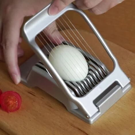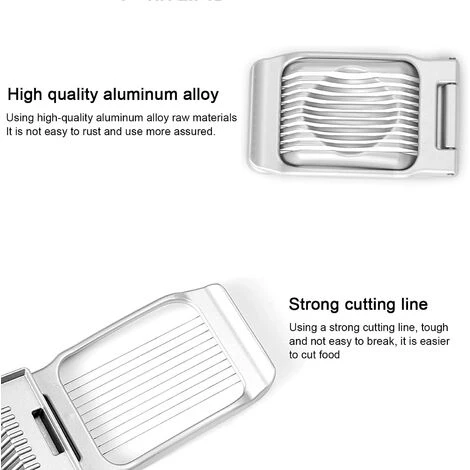 [HOHE QUALITÄT] – Schneidedraht, Halterung aus Zinklegierung, robust und praktisch. Der Cutter schneidet Eckenarbeiter perfekt. [Leicht zu verstauen] – Kleine Größe, nimmt keinen Platz in der Küche ein, einfach zu verstauen. [Leicht zu reinigen] – Spülmaschine sicher für eine schnelle Reinigung. [Einfach zu bedienen] – Einfach zu verwendender Eierschneider mit runden Rillen für eine einfache Eierunterstützung. [Große Anwendung] – Ideal zum Schneiden von hartgekochten Eiern . Auch geeignet für Pilze, Salzkartoffeln.