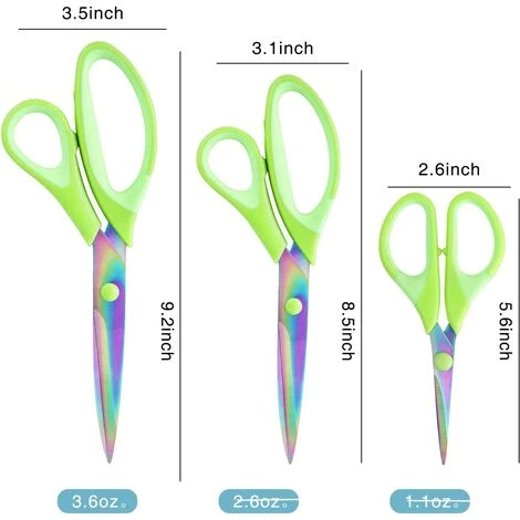 【MEHRERE GRÖSSEN】 Sie erhalten Jubiläumsgarn-Titan-Handwerksscheren im 3er-Set. Enthält eine 9,2-Zoll-Kleiderschere, eine 8,5-Zoll-Bastelschere und eine 5,6-Zoll-Stickschere.