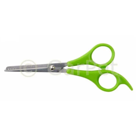 Diese Trimmschere wurde für die optimale Pflege des Tierfells konzipiert. Hiermit können Sie starke Verfilzungen sorgfältig abschneiden. In anderen Fällen empfehlen wir Ihnen einen Entfilzungskamm. Das abgerundete Ende der Schere vermeidet Hautverletzungen. Ergonomischer Griff.