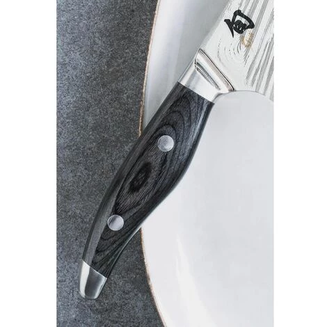 Mit Shun Nagare hat kai ein weiteres, innovatives Meisterstück japanischer Schmiedekunst geschaffen. Durch das edle Design, die besonderen Materialeigenschaften und einem technisch komplexen Herstellungsverfahren gehört die Messerserie zur absoluten Luxusklasse. Auf den hochglanzpolierten Klingen ist ein kunstvoll gestaltetes, strahlenförmiges Muster der Damaszener Lagen sichtbar. Diese Optik verleiht dem Messer in Kombination mit dem grauschwarz melierten Griff ein eindrucksvolles Gesamtbild. Die Klingen der Serie bestehen aus zwei unterschiedlichen Stahlsorten, die zu einem 72 Lagen Samaszenerstahl verbunden werden. Durch das aufwendige ineinander Schichten der beiden Stahlarten entsteht eine Klinge mit außergewöhnlich nachhaltiger Schnittleistung.