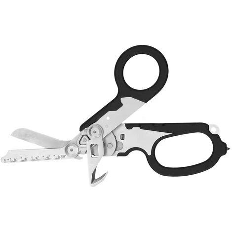 【6-in-1-Multifunktionswerkzeug】 Funktionen: Hartmetallglasbrecher, Sauerstofftankschlüssel, Ringschneider, Lineal (5 cm), Riemenschneider, Schere.