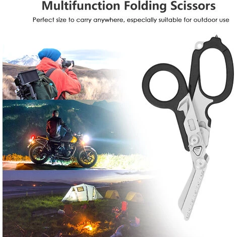 6-in-1-Multifunktionsscheren sind ein langlebiges und präzise gefertigtes praktisches Werkzeug. Dieses Tool eignet sich perfekt für Aktivitäten im Innen- und Außenbereich sowie für Notfälle. Faltbar, leicht und tragbar, um überall hin mitgenommen zu werden.