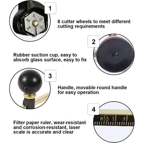 【Einstellbarer Glas-Kreisschneider】Runder Knopf, der Saugnapf hält dabei die Mitte die Kreise des Schneidrads.