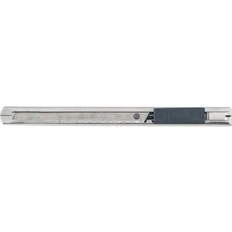 mit 1 Stück 9 mm Abbrechklinge, einfaches Entnehmen der verbrauchten Klinge hinten über die Verschlusskappe, Autolock-Funktion: automatische Verriegelung für sicheres Arbeiten, Klingenabbrecher am Gürtelclip.