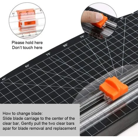 【SCHNEIDBARES PAPIER】: Das Schneidmesser ist für eine A4- oder A5-Papierschneidemaschine Ihrer Wahl geeignet. Die tragbare Größe ermöglicht das Tragen. Die spezielle Titanklinge kann jedes Mal 10-12 (80 g / m2) Papier schneiden.