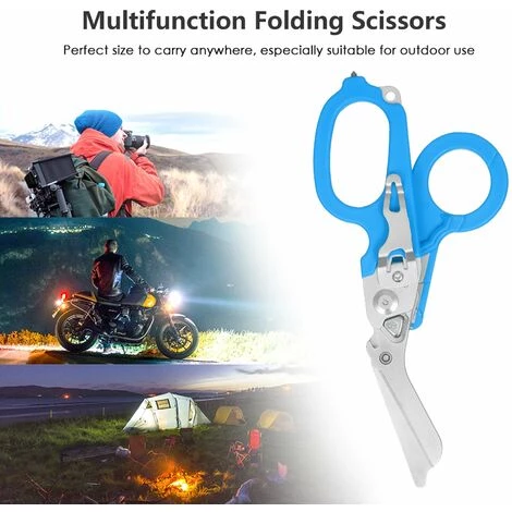 „Die multifunktionale 6-in-1-Schere ist ein langlebiges und präzisionsgefertigtes praktisches Werkzeug. Dieses Werkzeug ist perfekt für Aktivitäten im Innen- und Außenbereich und in Notsituationen. Zusammenklappbar, leicht und tragbar, um es überallhin mitzunehmen.