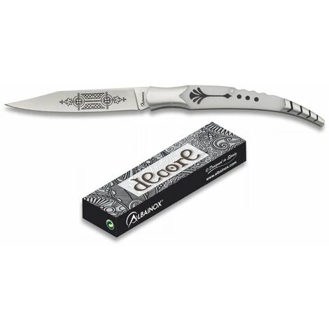 Weißes Messer verziert mit Albainox, Stahlzwinge, mango PVC, Klinge aus Edelstahl 8,8 cm, Farbkasten, 19789 mit folgenden Eigenschaften: