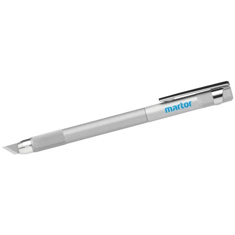 Alu-Messer mit versenkbarer, dreiseitig geschliffener Klinge.