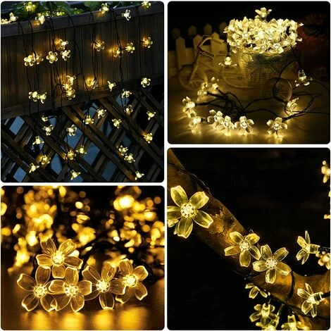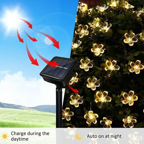 【Blumendesign】Die Solar-Lichterketten haben alle wunderschöne Kirschblütenformen, die entworfen wurden, um in einer dunklen Nacht leuchtende Kirschblüten in voller Blüte zu sehen.