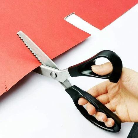 Diese Zackenschere zum Nähen eignet sich gut zum Schneiden von vielen Arten von Stoffen und Papieren, die nicht zu dick sind, wie z. B. Baumwolle, Filz , Synthetik, Polycotton, Denim, Sackleinen, Papierkarton.