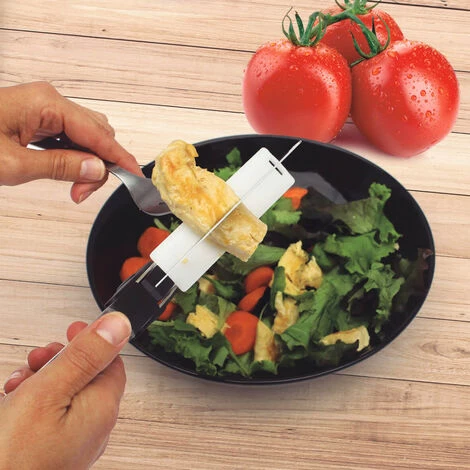 - Legen Sie einfach die Lebensmittel auf das Brett und betätigen Sie die Klinge wie eine herkömmliche Küchenschere. So erhalten Sie gleichmäßige oder ungleichmäßige Scheiben Ihrer Lieblingsgerichte. Sehr effektiv zum Schneiden von Gurken, Zwiebeln, Karotten, Tomaten, Salat… aber auch zum Schneiden von Würstchen, Brot und all Ihren Lieblingsgerichten.