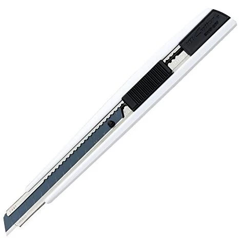Eleganter Cutter aus weißem Gehäuse aus Kunststoff und extrem scharfer Black-Blade-Klinge 9 mm