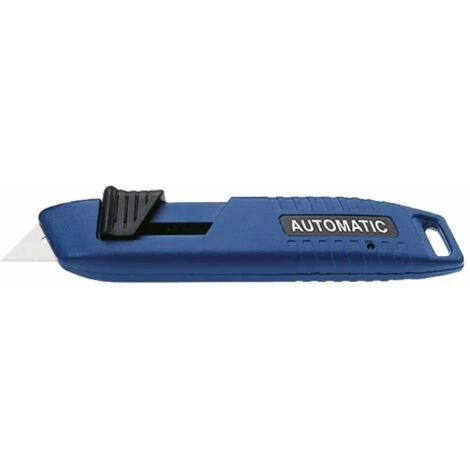 Sicherheits-Cuttermesser mit Trapezklinge • Ausführung: Druckgussgehäuse • Vorteil: sicheres Arbeiten dank automatischem Klingenrückzug