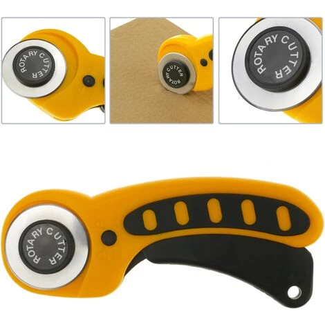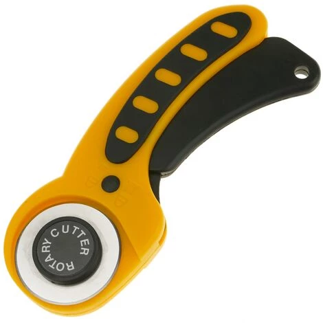 Rollschneider mit 45 mm Rundmesser. Rollschneider zum Schneiden von Stoffen, Papier und auf unebenen Oberflächen. Das rotierende Messer kann einfach gegen ein neues ausgetauscht werden. Ergonomisches Werkzeug, sehr bequem und anpassungsfähig an die Handfläche.