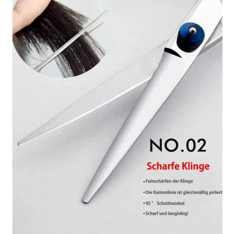 [Professionelle Haarschneideschere] – Die geschnittene Haarspange ist von hoher Qualität Japanisches 4CR13-Material, das sich durch hohe Härte, Korrosionsbeständigkeit, hohe Temperaturbeständigkeit und kein Ausbleichen auszeichnet. Darüber hinaus wird die Schere manuell poliert, mit gleichmäßigen Schnittlinien und hoher Schärfe, wodurch ein Abrutschen beim Haareschneiden wirksam verhindert werden kann.