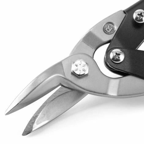 Mit der stabilen STAHLWERK Profi-Blechschere in Profi-Qualität lassen sich rechtslaufende Konturen, Figuren und Schnittmuster in Blechen ausschneiden. Die Klingen der Blech- und Figurenschere sind aus hochwertigem, wärmebehandeltem Stahl gefertigt. Mit der Handblechschere können Blechdicken von bis zu 1,25 mm geschnitten werden. Bei Blechen aus Edelstahl schafft die Blechschere Materialstärken von bis zu 0,8 mm. Die Werkzeughebel sind ist aus 2 mm dickem Stahlblech gefertigt und halten hohen Druck-belastungen stand. Die Griffenden der Blechschere sind rutschfest ausgeführt und ermöglichen sicheres Arbeiten.