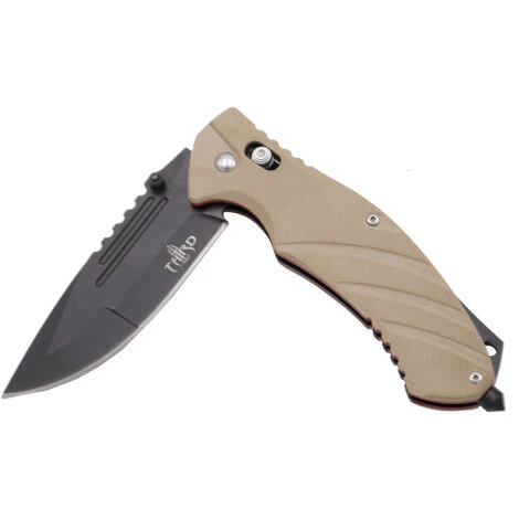 Messer Third 11488TN, Griff aus G10 bicolor camel mit rotem Sockel, Klinge aus rostfreiem Stahl 420, 8,5 cm, Arretierung durch Wellenschloss.