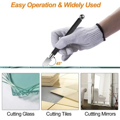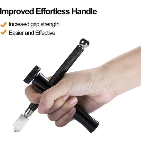 Ergonomischer Griff: Der bleistiftartige Hochleistungs-Metallgriff liegt gut in der Hand, was dafür sorgt, dass der Glasschneider einen besseren Halt hat Schneiden von dickerem Glas.